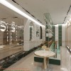 Bên cạnh đó, tủ Lavabo gỗ MDF chống ẩm sơn bệt màu trắng, mặt đá nhân tạo trắng cùng gương bỉ cao cấp chống ẩm mốc, nền gỗ MDF chống ẩm cũng được lắp đặt để mang tới sự thuận tiện cho nhân viên và khách hàng.