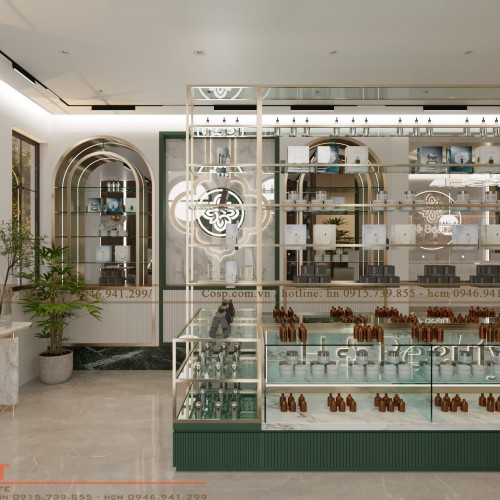Là nơi giới thiệu đến khách hàng những sản phẩm làm đẹp của cửa tiệm, khu vực trưng bày được Penviet và chủ đầu tư đặc biệt chăm chút, từ việc lựa chọn kiểu dáng nội thất cho tới cách kết hợp vật liệu nhằm làm toát lên tinh thần của mẫu thiết kế spa.