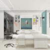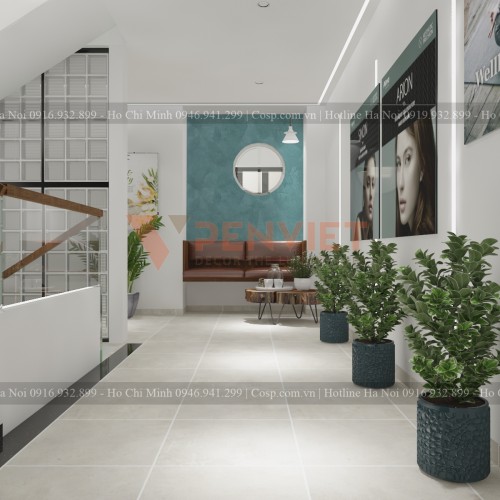 Với yêu cầu về một không gian thiết kế spa 80m2 hiện đại, thể hiện được chất trẻ nhưng vẫn phải đảm bảo sự hài hòa và trang nhã, KTS của Cosp đã quyết định sử dụng gam màu nội thất thuần trắng cùng điểm nhấn tường màu xanh cho spa Jackerry. Việc kết hợp thế này sẽ mang đến một không gian spa nổi bật nhưng vẫn hài hòa và sống động mà không bị giảm đi nét thanh lịch, tao nhã, tinh tế, tạo cảm giác thoải mái cho khách hàng.