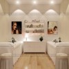 Việc sử dụng màu sắc này giúp thực hiện ý đồ tạo hiệu ứng thị giác mở rộng không gian của các kiến trúc sư. Phòng khách không quá rộng nhưng việc bố trí nội thất một cách khoa học, khiến cho khách hàng vẫn có được một không gian tuyệt vời để nhận tư vấn, hỗ trợ từ nhân viên spa.