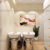 Các phòng chức năng được trang bị tủ để đồ, đèn hộp, tủ treo tường màu sắc tinh tế khiến cho những bức tranh in PP càng thêm nổi bật.