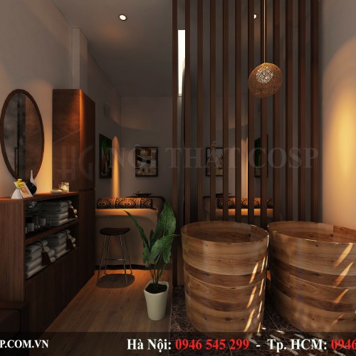 Ngoài ra, Cosp còn thực hiện rất nhiều các dự án thiết kế spa massage khác theo phong cách mộc, bạn đọc có thể tham khảo một số mẫu thiết kế nổi bật của chúng tôi dưới đây: