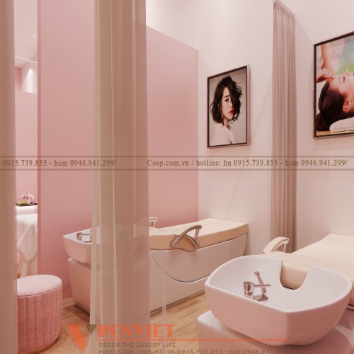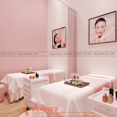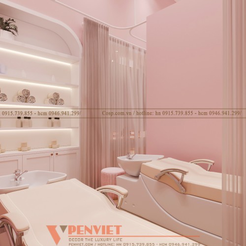 Thiết kế spa mina spa màu hồng ngọt ngào