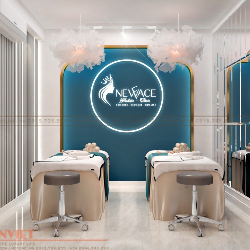 Không gian phòng spa được bố trí các giường trị liệu khung gỗ, nệm bọc cao cấp mang đến sự thư giãn tối đa cho khách hàng, giúp họ tận hưởng chất lượng dịch vụ tuyệt vời tại Newface.