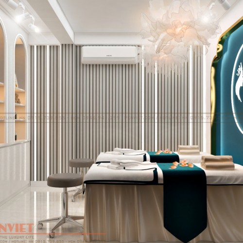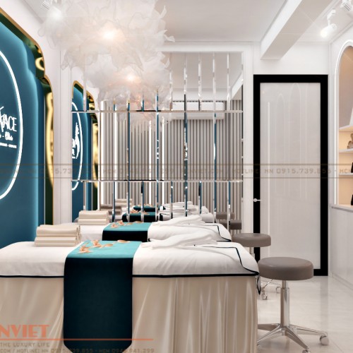 Để đáp ứng nguyện vọng của anh Hân cũng như các tiêu chuẩn về thiet ke spa của Hiệp hội thế giới về màu sắc, ánh sáng, cách âm cũng như đảm bảo các phòng chức năng chúng tôi tư vấn cho chủ tiệm lựa chọn phong cách Tân Cổ Điển.