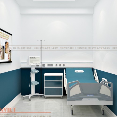 Phòng hậu phẫu được PenViet bố trí nội thất gồm: giường, tủ và máy theo dõi mức độ cải thiện. Không gian phòng được kiến trúc sư thiết kế khá đơn giản, đảm bảo công năng sử dụng, tạo sự thoải mái cho khách hàng sau quá trình tiểu phẫu.