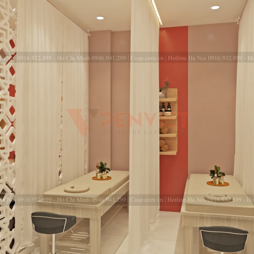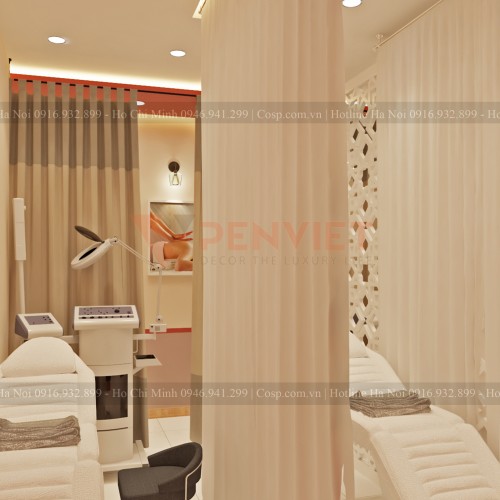 Thiết kế spa Thiên Kim được chia thành nhiều phòng dịch vụ với những chức năng khác nhau như: massage, phun xăm, gội đầu… Mỗi không gian đều được các kiến trúc sư của Penviet nghiên cứu và thiết kế tỉ mỉ sao cho phù hợp với dịch vụ mà Thiên Kim cung cấp.