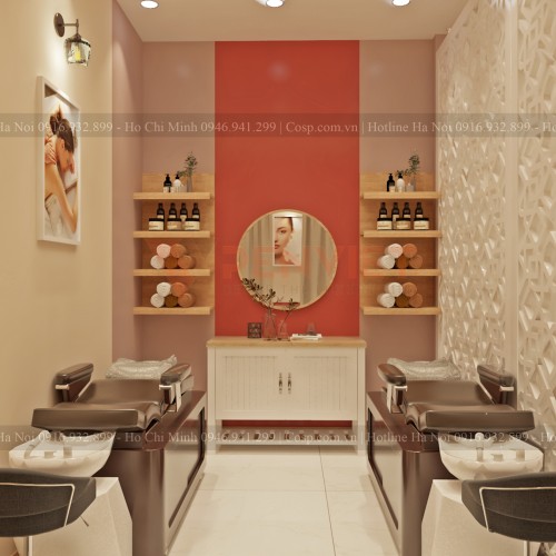 Khu vực này được thiết kế đơn giản cùng màu sắc trang nhã giúp với những đồ nội thất hiện đại, phục vụ cho quá trình làm đẹp được thuận tiện và đảm bảo yếu tố vệ sinh.
