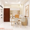 Thiết kế spa phun xăm sử dụng màu be là gam màu chủ đạo. Điểm điểm xuyết decor trang trí màu vàng mang đến không gian sang trọng và sinh động hơn.