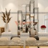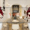 - Chất liệu: Inox màu vàng 24K, gỗ MDF, kính cường lực, mica, đèn Led,...