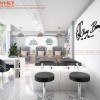 Ngoài ra, mặc dù có lợi thế về diện tích mặt bằng, song, việc phải bố trí nhiều khu vực chức năng khiến cho tổng thể không gian bị chia nhỏ. Bởi vậy, cách sử dụng màu sắc này sẽ tạo cảm giác cửa tiệm được rộng rãi, thông thoáng hơn nhờ sự phản xạ và luân chuyển ánh sáng.