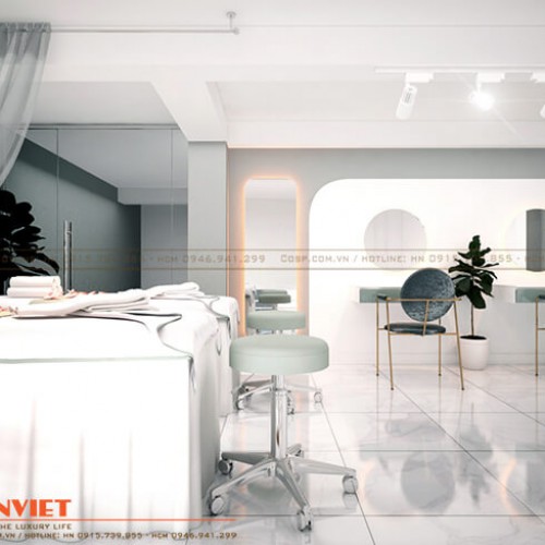 Sau khi lắng nghe những chia sẻ của khách hàng về nguyện vọng sở hữu một cơ sở kinh doanh chuyên nghiệp, hướng đến phục vụ những dịch vụ làm đẹp cơ bản, đang được nhiều chị em ưa chuộng, chúng tôi đã tư vấn cho chủ đầu tư thiết kế spa mang phong cách hiện đại, sử dụng màu trắng làm gam màu chủ đạo kết hợp với điểm nhấn màu đen làm nổi bật sự tương phản, mang đến vẻ độc đáo, ấn tượng cho không gian.