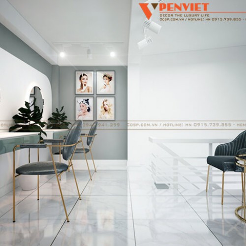 Penviet cũng hướng đến sự sang trọng thể hiện qua việc sử dụng những loại vật liệu và kiểu dáng nội thất đặc trưng trong thiết kế spa Shining Beauty. Điều này sẽ khiến khách hàng đến với cơ sở làm đẹp này luôn được trải nghiệm những dịch vụ làm đẹp hoàn hảo.