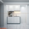 Khu vực bếp trong thiết kế nội thất spa còn được chúng tôi cũng lắp đặt thêm tủ bếp trên bằng gỗ MDF chống ẩm phủ Melamine để mở rộng không gian lưu trữ.