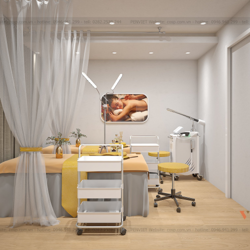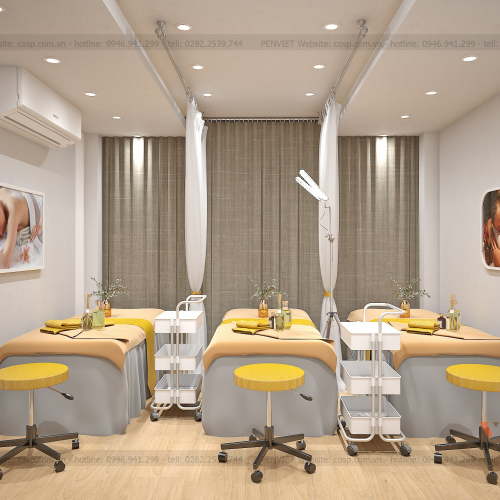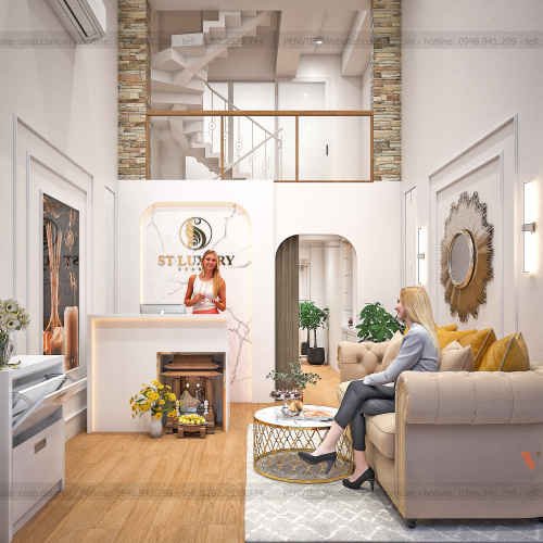 Thiết kế spa ST Luxury phong cách hiện đại đảm bảo sự thoải mái, tiện nghi và tạo cảm giác thư giãn cho khách hàng. Thiết kế spa bố cục không gian đủ rộng rãi để khách hàng và nhân viên dễ dàng di chuyển và thư giãn.