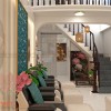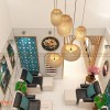 Phía trên các dãy ghế ngồi làm dịch vụ spa là tranh trang trí tượng Phật, hoa sen vô cùng thanh tịnh, yên bình. Tâm hồn khách hàng sẽ được an yên, tĩnh lặng hơn khi thư giãn cơ thể trong không gian mộc mạc này.