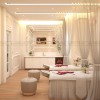Khu vực phòng khách được ánh sáng tự nhiên và ánh sáng nhân tạo cung cấp ánh sáng cho. Hệ thống đèn âm trần kết hợp với tone màu trắng sáng và những vật liệu có tính phản xạ ánh sáng đã làm cho không gian phòng khách của mẫu thiết kế spa trở nên rộng rãi, thoáng mát và đáng được chú ý hơn bao giờ hết.
