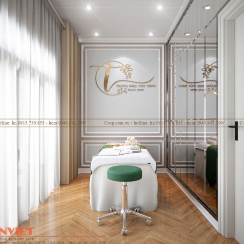 Sử dụng nội thất hiện đại cho không gian sinh hoạt trong mẫu thiết kế spa Trang Beauty