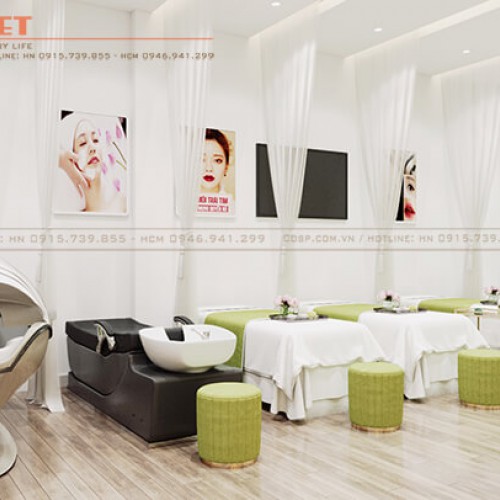 Nhằm đáp ứng nguyện vọng của khách hàng, Penviet định hướng phong cách hiện đại cho cơ sở làm đẹp này. Mặt bằng 65m2 được chúng tôi khéo léo phân chia tạo thành các khu vực chức năng riêng biệt bên cạnh những lưu ý về việc sử dụng màu sắc, ánh sáng, yếu tố cách âm nhằm mang đến cho khách hàng không gian tuyệt vời để nghỉ ngơi, thư giãn.
