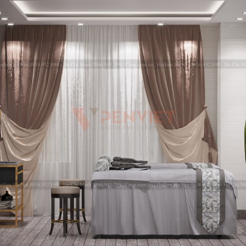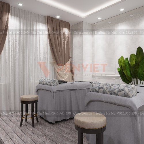 Thiết kế nội thất spa Tuấn's spaCác giường được ngăn cách bởi rèm che giúp tạo sự an tâm và thoải mái cho khách hàng.