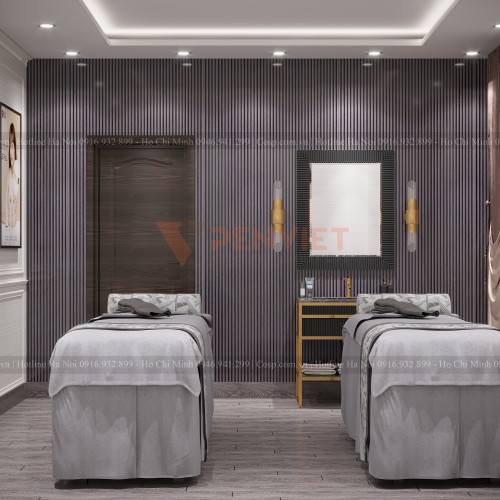 Hiểu được mong muốn của anh Tuấn, sau khi khảo sát mặt bằng kinh doanh của cửa hàng, KTS của Penviet đã tư vấn mẫu thiết kế spa Tuấn‘s spa này. Với việc kết hợp hài hòa giữa màu sắc và các sản phẩm nội thất cao cấp, không chỉ tạo nên một thiết kế spa đẹp mà còn đẳng cấp.