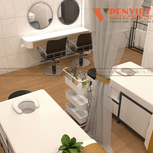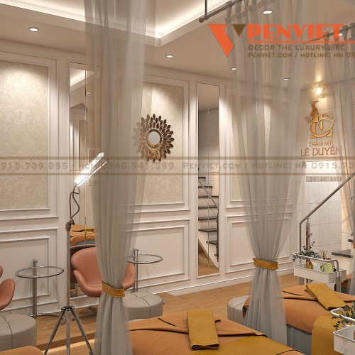 Sau khi tìm hiểu kỹ thông tin, chị Duyên đã tìm đến Penviet - đơn vị thiết kế thi công thẩm mỹ viện hàng đầu để được các kiến trúc sư tư vấn và hỗ trợ. Chủ đầu tư đã chia sẻ với Penviet rằng, chị muốn sở hữu một không gian thẩm mỹ, spa hiện đại, tạo cảm giác thư thái và thể hiện được tính chuyên nghiệp cho cửa tiệm của mình. Bên cạnh đó, mô hình kinh doanh này có kết hợp với nội thất phòng ngủ nên mẫu thiết kế không nên quá sa đà vào sự cầu kỳ, tránh gây những áp lực nặng nề cho các thành viên trong gia đình.