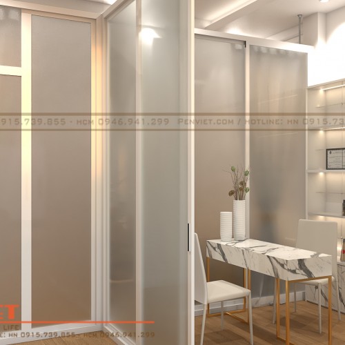 Để tạo không gian riêng tư, đồng thời đáp ứng những quy chuẩn về thiết kế thẩm mỹ viện, Penviet đã thực hiện setup phòng tư vấn riêng biệt bên cạnh không gian phòng khách.