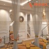 Bức tường đơn điệu, nhàm chán được tô điểm với các chi tiết phào chỉ nhựa, tranh in treo tường giúp không gian phòng VIP thêm sang trọng, ấm cúng và gần gũi.
