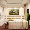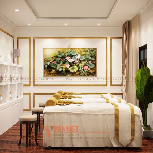 Để tạo điểm nhấn và decor thêm cho không gian sinh động, chúng tôi sử dụng các tranh treo tường trang trí với những gam màu phù hợp với thiết kế thẩm mỹ viện quốc tế Anna.