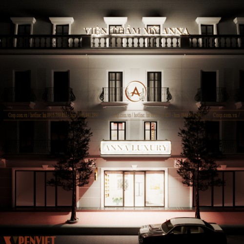 Dự án thiết kế thẩm mỹ viện Anna sở hữu mặt bằng tại khu biệt thự liền kề tỉnh Bình Dương, bởi vậy thiết kế mặt tiền cần đảm bảo tính thẩm mỹ và sang trọng. Không gian nội thất spa hướng tới phong cách tân cổ điển quý phái, do vậy phần bảng hiệu, ngoại thất cũng cần đáp ứng được một số tiêu chí để đồng bộ với bên trong thẩm mỹ viện.