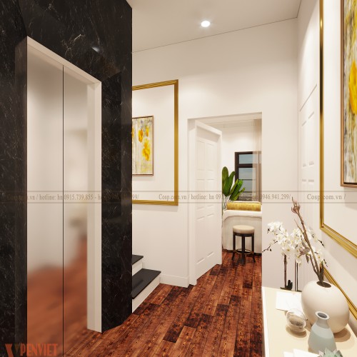 Để thiết kế thẩm mỹ viện trở nên hoàn hảo, Penviet cùng chủ đầu tư chú trọng trang trí đến từng chi tiết nhỏ như phần hành lang của mỗi tầng.