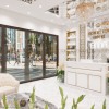 Chúng tôi sử dụng hệ gương lá hẹ để trang trí tạo điểm nhấn cho phòng spa tại tầng 3. Ngoài mang đến vẻ đẹp thẩm mỹ, nó còn có tác dụng giúp “ăn gian” diện tích hiệu quả và tạo hiệu ứng thị giác thu hút.