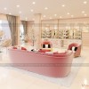 Ngay khi bước chân vào thẩm mỹ viện, nơi đầu tiên bạn được tiếp xúc đó chính là sảnh đón khách lớn với thiết kế không gian mở. Bộ sofa màu hồng nữ tính được đặt ngay chính giữa căn phòng được đặt trên tấm thảm lông mềm mại, đi kèm với chiếc bàn trà sáng bóng rất sang trọng.