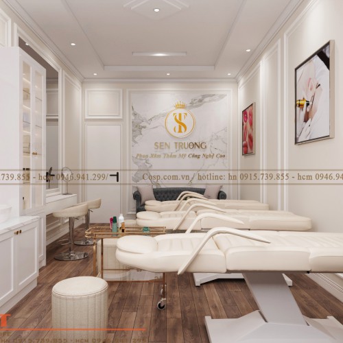 Với mục tiêu hướng đến khách hàng cao cấp của chị Ngân, KTS Penviet đã lựa chọn phong cách thiết kế tân cổ điển cho tiệm phun xăm Sen Tường. Thiết kế sử dụng đồ nội thất cao cấp, tỉ mỉ trong từng đường nét, phối hợp màu sắc tinh tế đã tạo nên tổng thể spa SANG – CHẤT – THU HÚT.