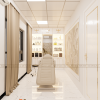 Bề mặt quầy lễ tân được ốp đá họa tiết vân mây đẹp mắt, đồng điệu với nền gạch nhà. Với chỗ ngồi thoải mái, lối đi vừa phải giúp nhân viên có thể thuận tiện để tư vấn cho khách hàng.