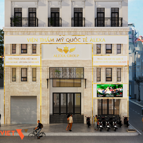 Viện thẩm mỹ quốc tế Alexa nổi bật với mặt tiền có các chi tiết inox vàng gold rực rỡ. Từ xa mọi người có thể dễ dàng nhận diện được thương hiệu với sự mới mẻ và đẹp mắt. Với cách sử dụng biển bảng hiện đại này, tạo nên màu sắc mới đẳng cấp xứng tầm với thương hiệu nổi tiếng thẩm mỹ viện Alexa.