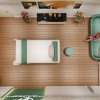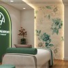 Việc cải tạo, sơn bả lại trần, tường, lựa chọn màu trắng làm gam màu chủ đạo được tư vấn cho chủ đầu tư nhằm tạo hiệu ứng thị giác mở rộng không gian đồng thời mang tới sự chuyên nghiệp cho mẫu thiết kế nội thất spa mini. Điểm nhấn màu xanh rêu độc đáo tạo cảm giác tươi mát giúp cho tâm trạng của khách hàng trở nên thư thái, dễ chịu, từ đó góp phần làm tăng hiệu quả làm đẹp.