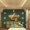 Vách và tranh in PP trang trí khung gỗ MDF phủ Melamine kết hợp với họa tiết chim hạc đặc trưng và nhựa giả mây tre đan mang đến vẻ đẹp đậm chất Đông Dương, tạo cảm giác gần gũi, thân quen với khách hàng, giúp họ cảm thấy thư thái để trải nghiệm dịch vụ tại Home Spa.
