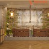 Vách trang trí phía sau quầy thu ngân sử dụng những màu sắc, chất liệu khơi gợi sự hoài cổ. Chúng tôi lựa chọn khung nẹp gỗ viền, ốp nhựa giả đá kết hợp kệ gỗ âm tường bằng gỗ MDF phủ Melamine và nhựa giả mây tre đan cho mẫu vách này để tạo nên sự nhất quán trong thiết kế nội thất spa.