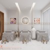 Tiếp đến là không gian chăm sóc body và làm nail của spa Hoài Thương. Khu vực này phân chia 3 công năng khác nhau như làm móng, chăm sóc body và bàn trang điểm. Sự bố trí hài hòa, hợp lý giữa các khu vực chức năng này giúp spa trở nên ngăn nắp, chuyên nghiệp hơn.