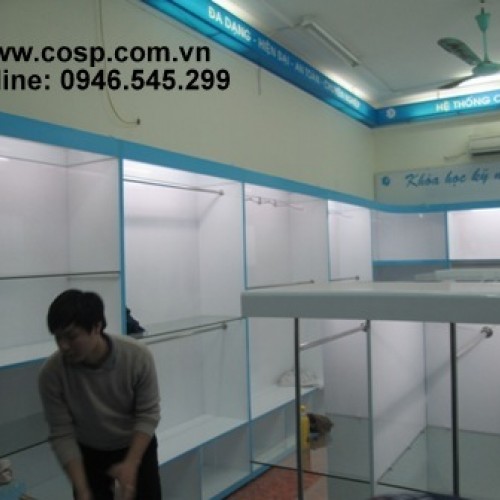 Từ kinh nghiệm thiết kế kids plaza 533 Nguyễn Trãi và dựa trên mong muốn của khách hàng, đội ngũ thiết kế của cosp thiết kế cửa hàng với hệ thống tủ kệ nhiều ngăn tầng nhằm tạo không gian trưng bày sản phẩm.