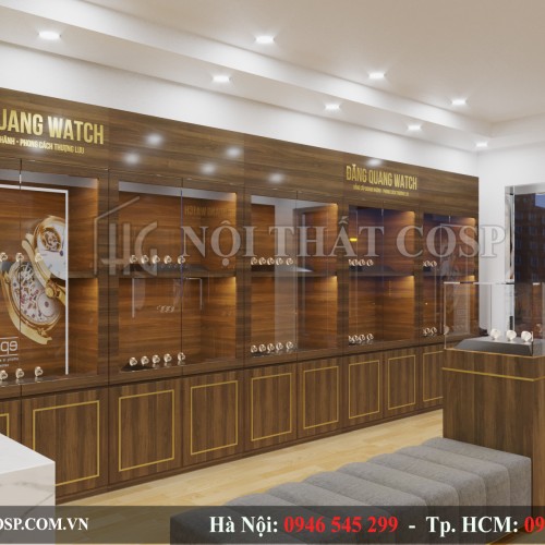 Đồng hành cùng chuỗi cửa hàng đồng hồ Đăng Quang, Nội thất COSP cùng với đội ngũ KTS dày dặn kinh nghiệm đã mang đến những sự lựa chọn tối ưu nhất từ đường nét thiết kế cho đến chất liệu nội thất cao cấp và phù hợp với không gian, đồng thời vẫn có những nét khác biệt và mới mẻ.