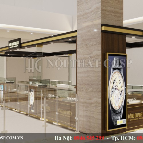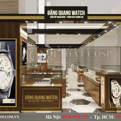 Dưới đây là một trong những mẫu thiết kế nội thất shop đồng hồ Đăng Quang với những nét tiêu biểu trong thiết kế nội thất, các bạn cùng tham khảo nhé!