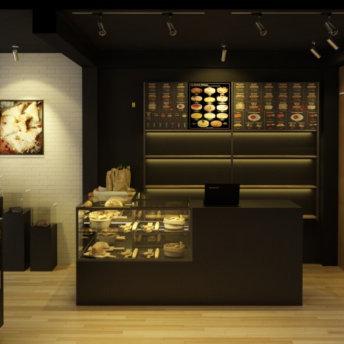 Cửa ra vào chúng tôi thiết kế với chất liệu kính cường lực trong, giúp mang ánh sáng bên ngoài đến với tiệm bánh, phần nào tiết kiệm được điện năng. Với tone màu chủ đạo của shop là màu đen huyền bí, hệ nội thất cũng mang cùng tone màu đó tạo nên sự xuyên suốt và hài hòa.