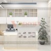 Hầu hết hệ thống tủ đều sử dụng gỗ MDF chống ẩm cao, với màu kem, vàng nhạt kết hợp với hệ thống đèn giúp không gian lung linh và bắt mắt hơn.