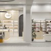 Bàn thu ngân được thiết kế khá gọn gàng, với mặt bàn bằng đá màu trắng rất tinh tế. Đằng sau, có kệ tủ tường được bày trí thêm những chậu cây xanh làm điểm nhất. Ở đây logo được đặt ngay trên kệ để bánh vừa tối giản được không gian mà vẫn nổi bật và thu hút. Bộ khung hình tròn màu trắng không phát sáng và hai chữ cái “MH” màu vàng ở trên, khá đơn giản những trang nhã và phù hợp với thiết kế cửa hàng.