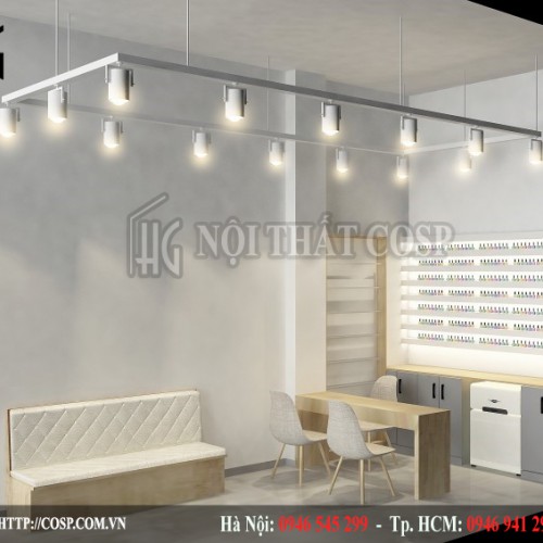 Chúng tôi – Nội thất COSP rất hân hạnh được trở thành đơn vị thiết kế, thi công tiệm nail Ái Vy. Với những chất liệu cao cấp mà chúng tôi đã lựa chọn tỉ mỉ, không gian tiệm nail của chị Vy trở nên hiện đại, sang trọng và gọn gàng.