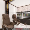 Bên ngoài cùng là hàng ghế salon cao cấp với chất liệu da mềm mịn, là điểm nhấn trong nét thiết kế này và tạo nên một không gian tiệm nail chất lượng.