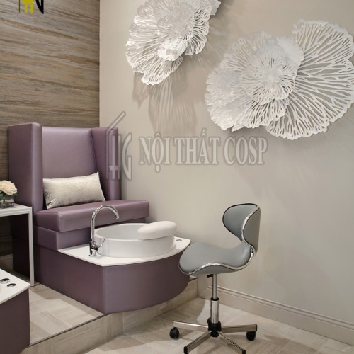 Đối tượng khách hàng của tiệm nail là phái đẹp, vậy nên chúng tôi sử dụng tông màu chủ đạo tím trắng cho mẫu thiết kế nội thất tiệm nail - Huệ An để tạo nên vẻ đẹp chung vô cùng nữ tính.