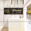 Bức vách phía sau quầy thu ngân làm bằng Alu đen với bộ chữ bằng mica phát sáng. Còn logo và chữ “Beauty” thì lại được làm bằng chất liệu Alu vàng gương cắt CNC.